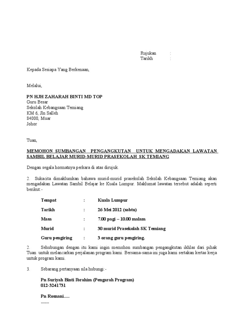 Berikut adalah panduan format dan contoh menulis surat rasmi untuk permohonan. Kawasan tanaman kami memerlukan lebih modal dan peralatan untuk menyediakan keperluan tersebut. Contoh Surat Permohonan Dana.